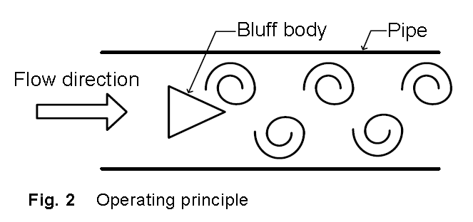 The bluff body is designed to optimise the pulse strength of the pressure variations at the position of the differential pressure detector. The bluff body is an integrated part of the injection moulded flow pipe, or supplied as a composite insert solution. Flow ranges are determined by the pipe diameter and the signal processing parameters. The differential pressure detector key elements are a bulk micromachined silicon chip and a microprocessor-based signal-conditioning circuit, both on the same PCB. The conditioning circuit converts the pressure reading to a signal proportional to the flow